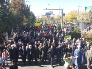 ۱۴۰۴/۸/۱۵صبح روز سه شنبه سیزده آبان ماه ، سالروز تسخیر لانه جاسوسی آمریکا، روز ملی مبارزه با استکبار جهانی و روز دانش آموز، اقشار مختلف مردم شریف شهرستان همراه با مهندس میرزایی فرماندار ، امام جمعه ، مسئولان قضایی و فرماندهان نظامی و انتظامی و مسئولان ضمن حضور گسترده در مراسم این روز و سردادن شعارهای الله اکبر خامنه ای رهبر ، مرگ بر آمریکا و مرگ بر اسرائیل بر تداوم راه امام(ره) و شهداء تاکید و با اعلام حمایت از اقتدار و عظمت ایران اسلامی ، نفرت خود را از استکبار جهانی اعلام نمودند.